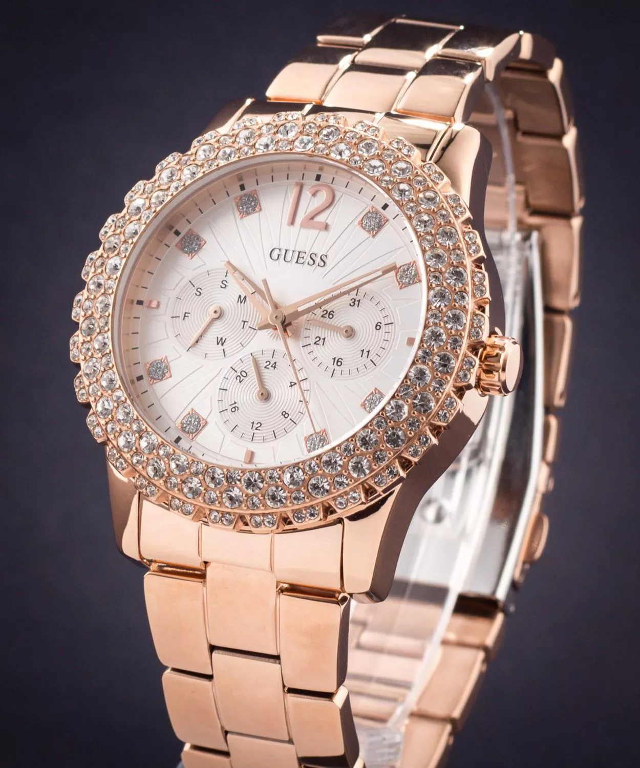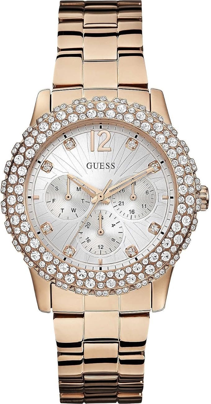 ساعة جيس للنساء اصلية موديل Dazzler W0335L3 لون فضي واستيك معدن ستانلس لون روز جولد.